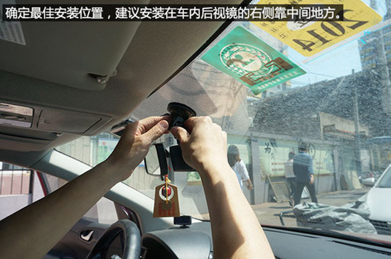 行车记录仪安装的位置,越靠近车内后视镜越好——一来居中拍摄的角度更大,二来安装在内后视镜附近对前挡视线的影响是最小的。把行车记录仪安装在内后视镜与前挡玻璃之间,属于最居中的位置。安装在这个位置时要注意,如果记录仪与内后视镜挨得太近,可能会影响内后视镜的调整角度。