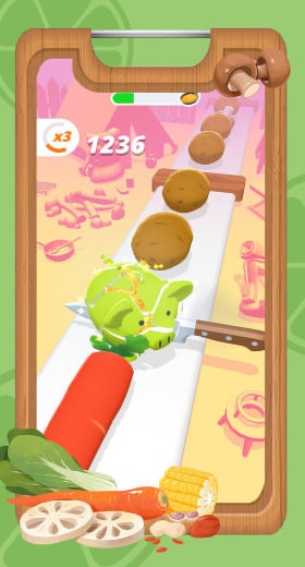 3、切菜的操作超级简单,不需技巧也可轻易体验到游戏的无限快感。