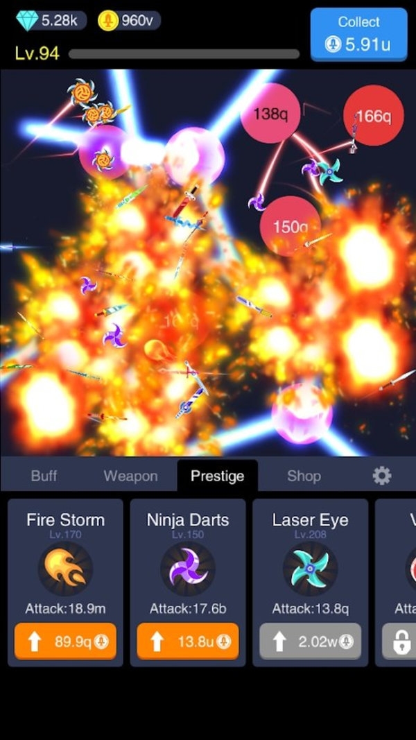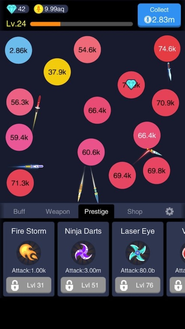 2.您可以选择升级当前的刀,以增加攻击力或解锁新的。解锁一个新的刀后,您可以使用所有的刀一起攻击。