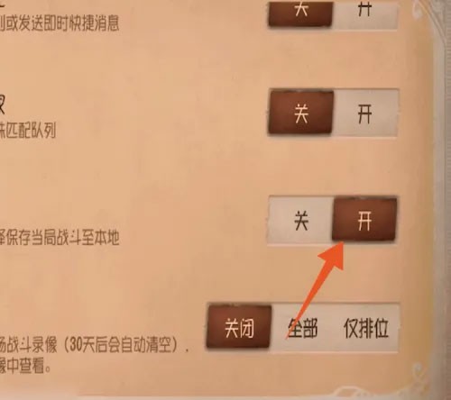 进入到设置的游戏界面后,把里面的保存战斗录像按钮打开(不然是无法保存录像的)。