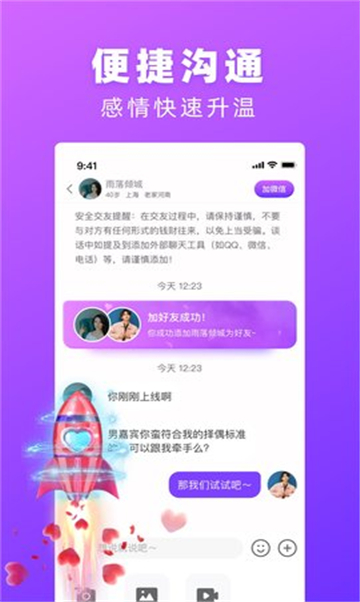 整个操作界面也是非常的简单大方,聊天功能非常强大,用户可以轻松体验,非常不错,可以直接在线来展开交谈,让你们可以更加了解对方,促进下距离,感觉到更加的轻松自在,可以来这里寻找自己的好友。
