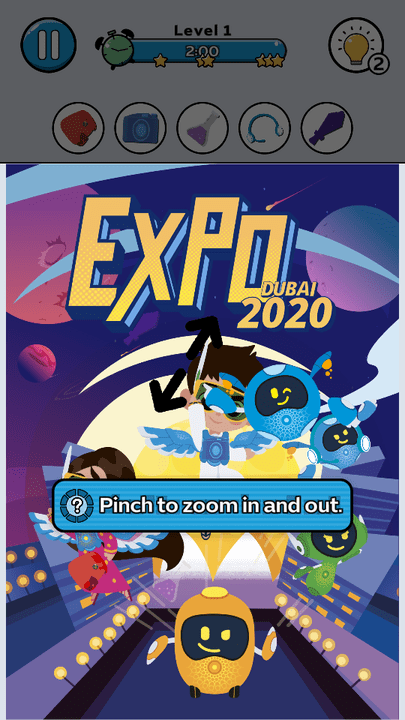 玩家将走进迪拜世博会,在萨拉玛的带领下和吉祥物一起发现隐藏物品,寻找那些隐藏在秘密角落里,或者伪装的非常巧妙的物品道具,虽然一开始能够轻松的发现,但是越往后,难度越高,很多物品的隐藏方式就在你眼前,都很难发现。