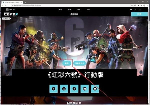 1、首先打开彩虹六号手游官网,点击注册按钮。