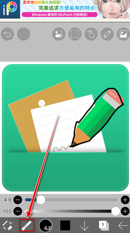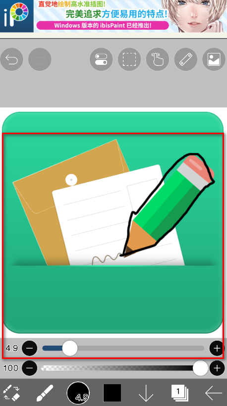 5.如下图所示,小编选择的是4.9粗细的软画笔,将铅笔的轮廓画出来。