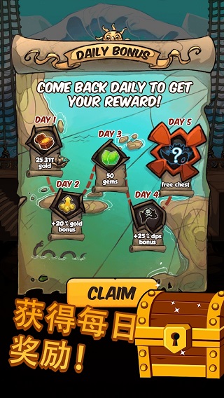 在海盗点击者,增量角色扮演游戏中,你会发现挑战和任务。