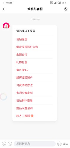 婚礼纪app很多用户遇到的问题就是现金提现了,这时候就需要人工客服了。