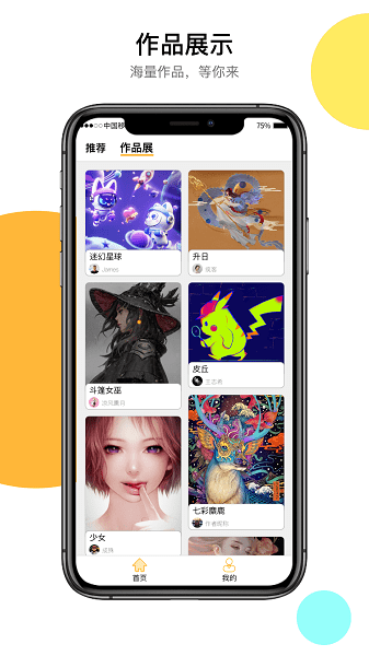 1.海量的作品展示库可以让你观看到很多好看的作品图片,以及一些极具艺术感的作品;