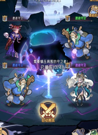 每层遗迹都有4个守卫和1个守卫首领,玩家需要先对守卫进行挑战,挑战时只能上阵1个神将与守卫进行攻击。