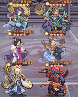 4、佛域阵容:文殊菩萨+济公+不动明王+普贤菩萨/观音菩萨+紫霞仙子/唐三藏+地藏菩萨