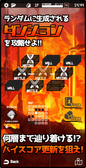 探索多种地牢,合成高级道具,养成你的专属角色,简单明了的游戏画面。