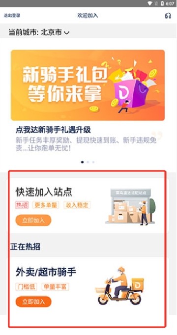 3、之后点进下方的热招板块中,选择自己想申请的骑手资格。