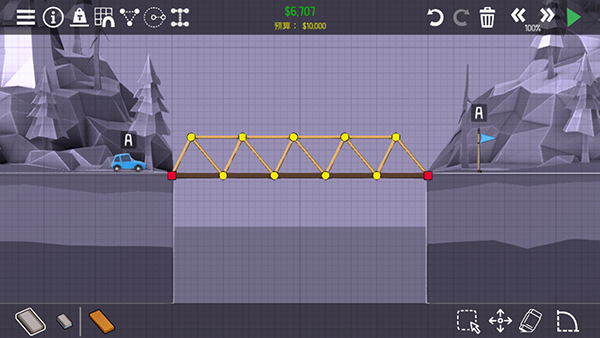 3、而且桥梁在建造的时候,还有预算等限制必须考量,也让建桥的难度更加增加,为游戏带来更多挑战性!