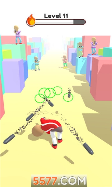 非常考验玩家反应力的挑战,去躲避各种飞射出来的子弹,不要让橡皮人受伤。