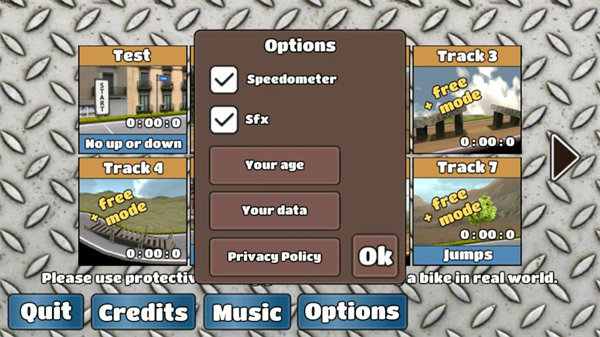4、各种不同风格的跑道图等着你去挑战,你一定要注意你摩托车的马力,一不小心就会跌入深渊。