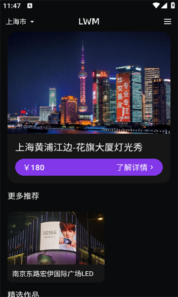 LWM是一款专业的商业投屏服务平台,为大家带来全国各省市市中心的投屏渠道,让商业投屏走入大家的生活中,人人都能上大屏幕上打广告或者是宣传自己。