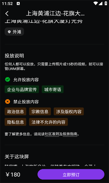 4.确定好想要投屏的位置后,直接点击进入查看投屏须知,确认无误后可以预定。