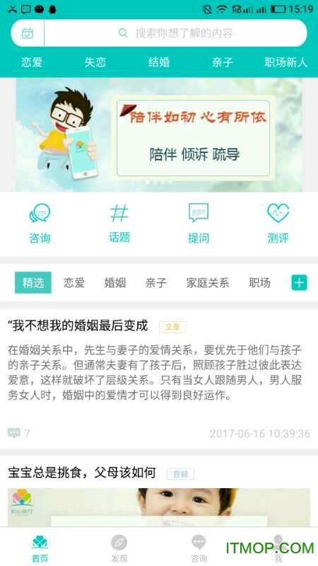 初心客厅 是一款关注现代人心理健康的 心理app ,软件帮助大家解决恋爱、婚姻、亲子成长、职场等多种问题,有效的解决心理困惑、缓解心理亚健康状态。欢迎感兴趣的用户前来it猫扑下载!