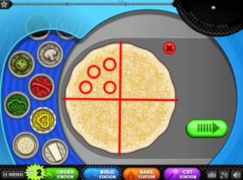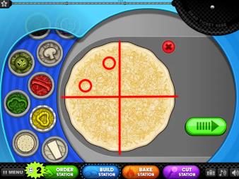 5、因为有的食材很大一块,放的时候同种食材尽量不要让他们重叠,不同的可以重叠,所以大的食材放的时候要注意距离,放两块的时候也会尽量放开一点,放边上一点,但也不要太边上,也尽量不要超出区域,稍微超了一点切的时候可以调整一下。这里都不考虑切几块,即使切六块,也不用担心,可以得满分的。