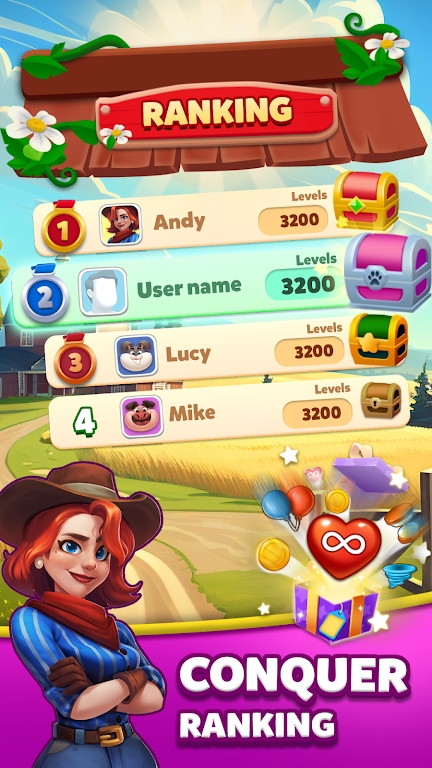 动物农场果酱是一款非常有趣的卡通风格模拟经营游戏。在这个游戏中,玩家将扮演一位农场主,经营着自己的农场。玩家可以通过三消的方式获得积分和道具,完成各种任务目标。游戏设计独特的关卡挑战,成功过关的还可以解锁新的动物品种和更多有趣玩法,让玩家十分有动力去不断解锁新内容。游戏画面绚丽多彩,动物们生动可爱,音效欢快活泼。不仅能为玩家带来闯关的乐趣,还能享受到农场生活惬意。