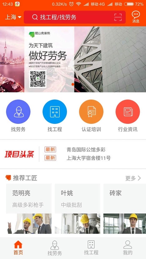爬山虎劳务平台 是一款建筑工程劳务服务软件,在这里,为建筑工程提供专业可靠的劳务人员,提供真实工程信息,可以来 应聘 劳务人员,真实可靠,你还在等什么,赶快到下载吧!