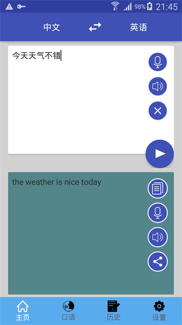 中英翻译这款软件可以帮助你进行中英翻译,特别强大的翻译功能带来了很多的方便,页面设计非常的简单,支持多样化的翻译功能,随时可以打开软件来翻译出很多不同的文字,还提供了很多英语的词库,学习一些比较常用的英语短语。