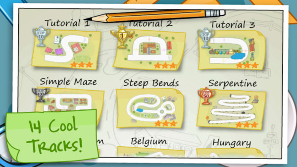 游戏中你需要控制赛车在各种不同的跑道上行驶,找到并且解开机关,收集到所有的星星即可通过。