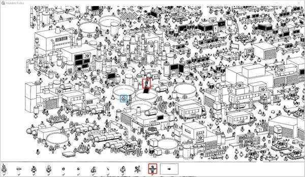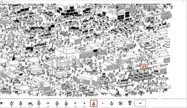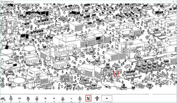 1、打开寻找隐藏的小人,游戏内如图,玩家需通过游戏右侧事物在途中寻找出来;
