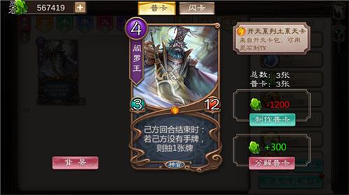 游戏中最常使用的卡按照品级分为天卡,地卡,凡卡,天卡的获取概率极高,爆率为33.17%,只需要开平均每3个卡包就能获得1张天卡,充分享受抽卡乐趣。