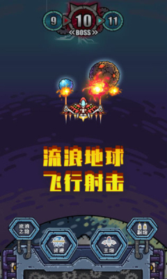 1.手绘风科幻背景:在地球流浪背景下,玩家操作飞机“领航员号”去击败一波又一波的陨石。