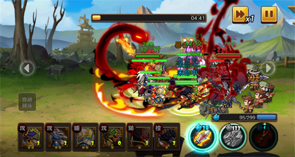游戏中时,玩家固定上阵武将名称和数量,无需进入游戏后再进行召唤,全部武将一进入游戏就召唤完毕将会在英雄的带领下杀的敌方片甲不留。