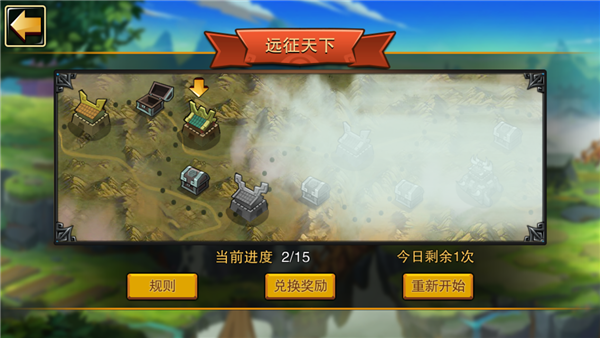 《全民口袋争霸》中自然不能缺少远征天下的玩法,远征天下玩法是游戏中资源产出最多的玩法,玩家通过不同的关卡可获得各种不同的奖励宝箱,宝箱内包含物品,道具,武魂,铜钱等等物品。远征天下一共分为15关,这15关的守关者分别为与挑战者实力相当的其他玩家,越到后面关卡对手越强,获得的奖励越丰富。