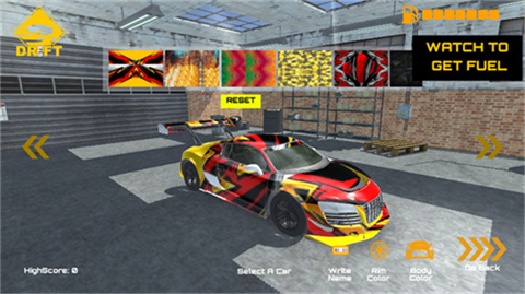 1、进入赛场后,可以点击左右两侧的按键,不断的切换车辆。