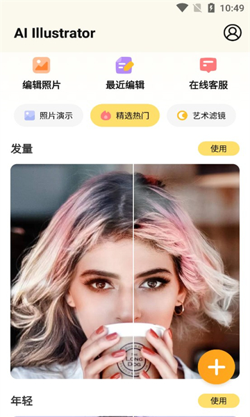 AI Illustrator是个给很多想要ai在线修图的用户们而打造的手机修图工具,软件中的修图功能多种多样,可以让你的图片转换性别,转换年龄,转换角色,各种ai修图技术,让你想要的效果快速呈现。