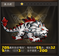 白虎 :白虎也是前提可抢夺的宠物之一.作用就是提示我方的战斗力.位居二线成员.