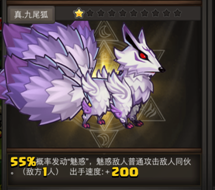 九尾狐 :作为早期可通过掠夺的宠物.其效果也非常好用,让敌方攻击自己同伙.建议早期就通过抢夺碎片合成一只.然后放在上阵队伍的第一个.保证战斗开始时可以废除敌方的一个火力.