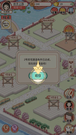 6、然后就可以前往建设民宅了,然后多余的房间也可以用来招租,招的租客越多收入就越多,快来一起数钱吧!