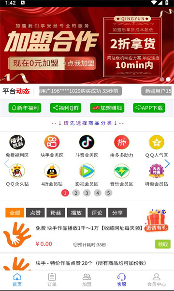逸新百货商城app是一款福利商城,这里主要是可以购买一些虚拟产品,包括快手,抖音,拼多多等多个专区,让你可以涨粉点赞,还有各种任务可以去完成,赏金也是相对不错的,快来试试吧!
