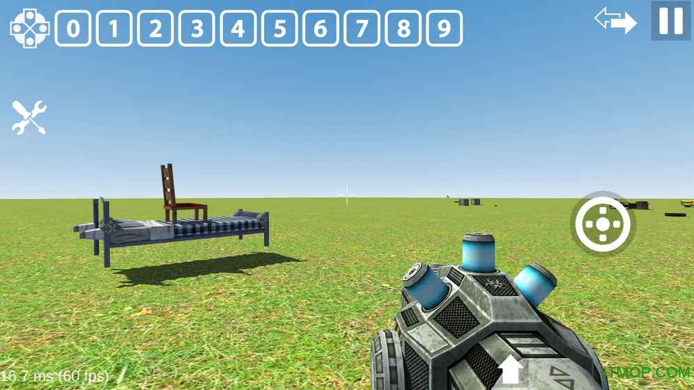我们可以看到游戏中有个类似 枪战游戏 中的准心,利用这个准心对准你要编辑的素材,然后点击右边的十字,这样就会跳出多个编辑按钮.我们可以利用屏幕左下方的虚拟摇杆来转动视角改变物体的位置,这样就可以来控制和安放我们需要的物品.