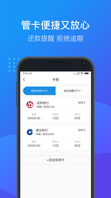 多卡管理:账单日还款日一目了然,账单日免费短信提醒;