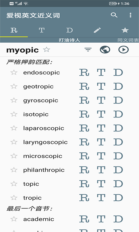 输入的单词能够自动进行同义词的转化以及押韵词汇的智能匹配,让用户更好的扩大自己的辞海。