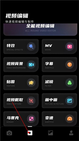 4、保存后的照片可以进行后期编辑和视频编辑,包括特效、字幕等功能。