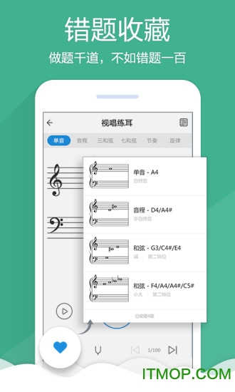 乐理视唱练耳app 是一款由北京得它科技有限公司官方推出的手机乐理视唱练耳学习软件,这里有最优质最棒的乐理习题,最复杂最特色的视唱练耳旋律,如果你喜欢的话,那就快来 IT猫扑网 前来下载体验吧!