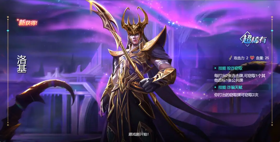 洛基初始2点攻击,25点血量,力速智三维下限是4/6/6,他会让敌方像面对恶作剧一样的难受。技能【狡诈窃取】【诈骗天赋】都与窃取其他目标的公共牌有关,像滚雪球一样提升自己的连击数同时降低对手攻防两侧的能力,牌越多那么牌就越多(我在说什么……)接下来让我们看看适合他的卡组吧