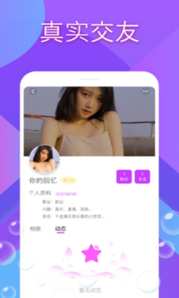 1、严格用户审核,具有真人认证标志即可放心热聊,拒绝机器人陪聊,信息真实可靠,拒绝照骗。