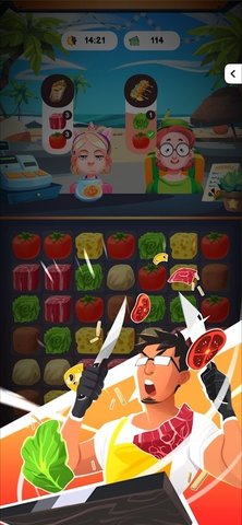 1,游戏玩法简单有趣的消除玩法,游戏玩家需要根据客户的需求消除食材,将相应的食材变成各种美食,消数越多得分越高。