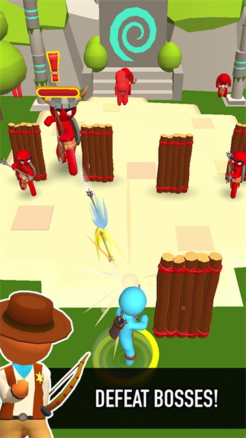 弓箭射击竞技场是一个玩起来十分好玩的射击类游戏,我们可以在这里面操控着自己的角色,不断的射击,我们会同时面对多个敌人的攻击,所以我们可以利用竞技场里面的木板来抵御敌人的攻击,当我们在休息的时候就可以躲藏到木板后面,这样敌人就无法攻击到我们。