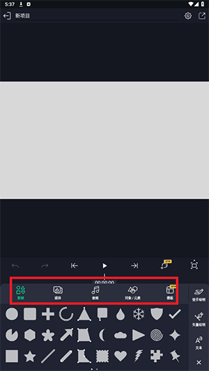 5、选择形状,媒体,音频,对象,元素,添加文本等