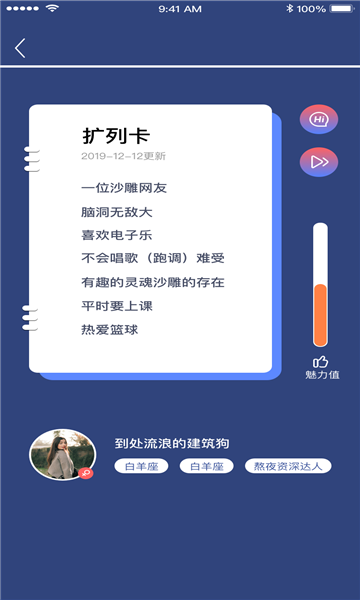 2、个性的个人主页,可以了解对方更加详细的动态;