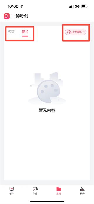 进入“素材”页面;选择好素材类型,点击“上传”即可