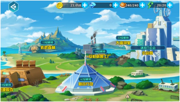 界面的正上方显示玩家各种资源的数量,如金币,钻石,体力等。